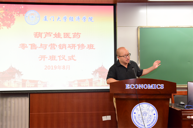 在开班仪式上,廖景峰主任首先代表厦门大学经济学院热烈欢迎k8凯发医药零售与营销研修班的学员到厦大学习,并就厦门大学及经济学院的相关情况进行了介绍。他说,k8凯发学员走进厦大就是厦大的校友,希望未来的日子能够关心、支持母校的发展,多提宝贵意见,同时他也祝大家在厦大学习期间学有所成、学有所获。