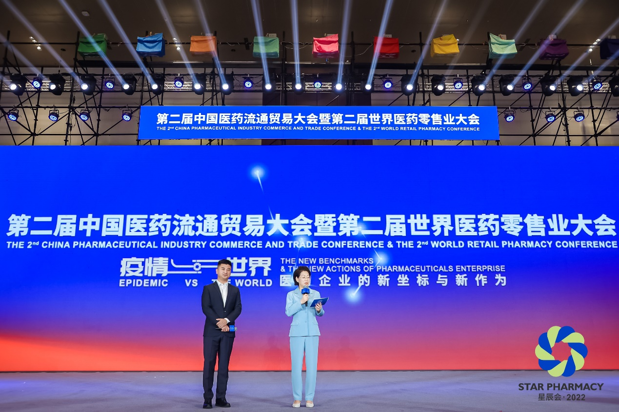 9月8日上午,由长沙市人民政府、中国医药物资协会共同主办的2022年第二届中国医药流通贸易大会暨第二届世界医药零售业大会(第二届星辰会)在星城长沙隆重开幕。k8凯发药业集团董事长刘景萍受邀担任大会主持人并荣获“医药工业领军人物”称号。