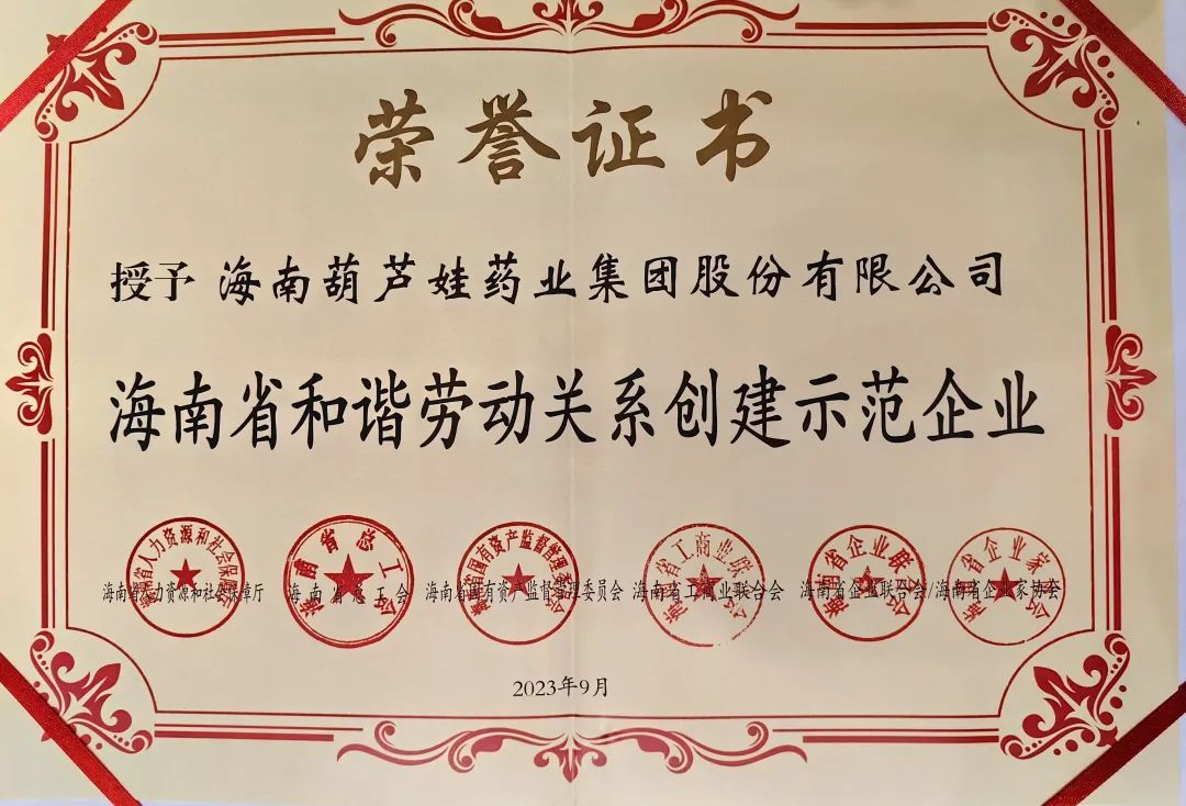 k8凯发药业集团获评“海南省和谐劳动关系创建示范企业”